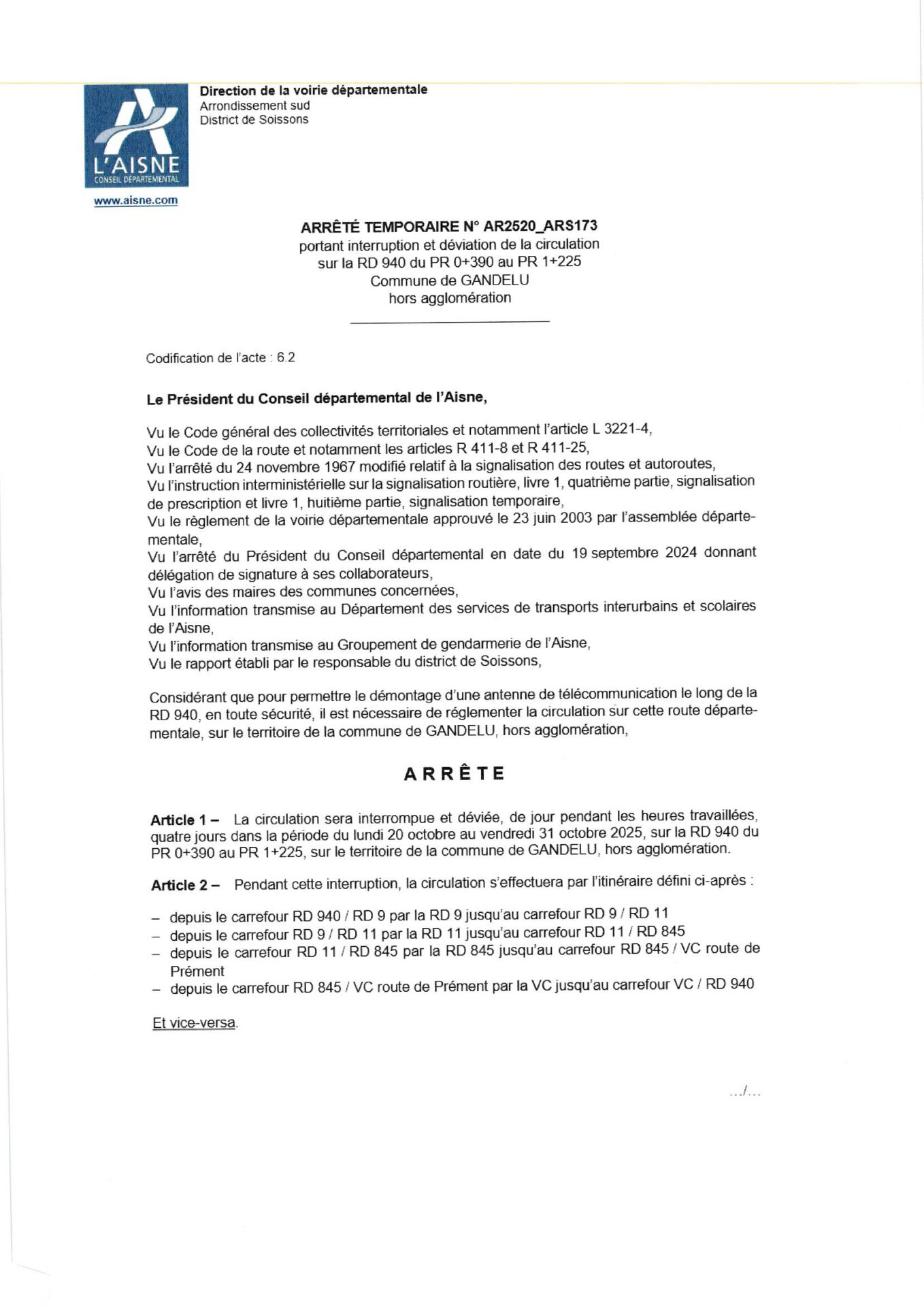 Déviation RD 940 (entre Gandelu et Prément) pendant des travaux
