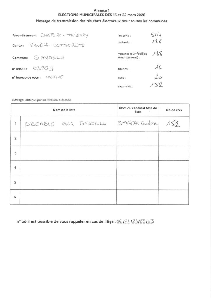 Résultats des Elections Municipales 2026